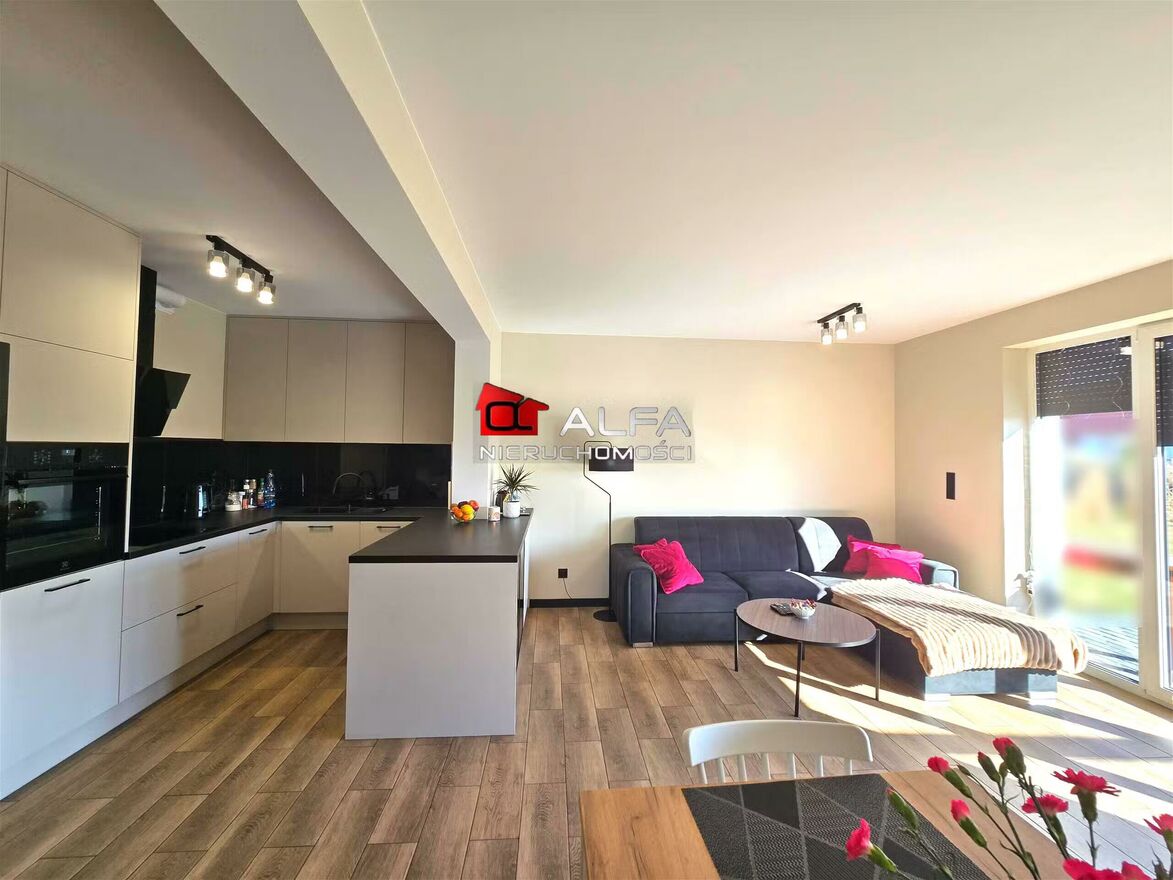 Na wyposażeniu pozostaje umeblowana i wyposażona w sprzęt AGD kuchnia (zmywarka, piekarnik, mikrofalówka, płyta indukcyjna, okap, lodówka)